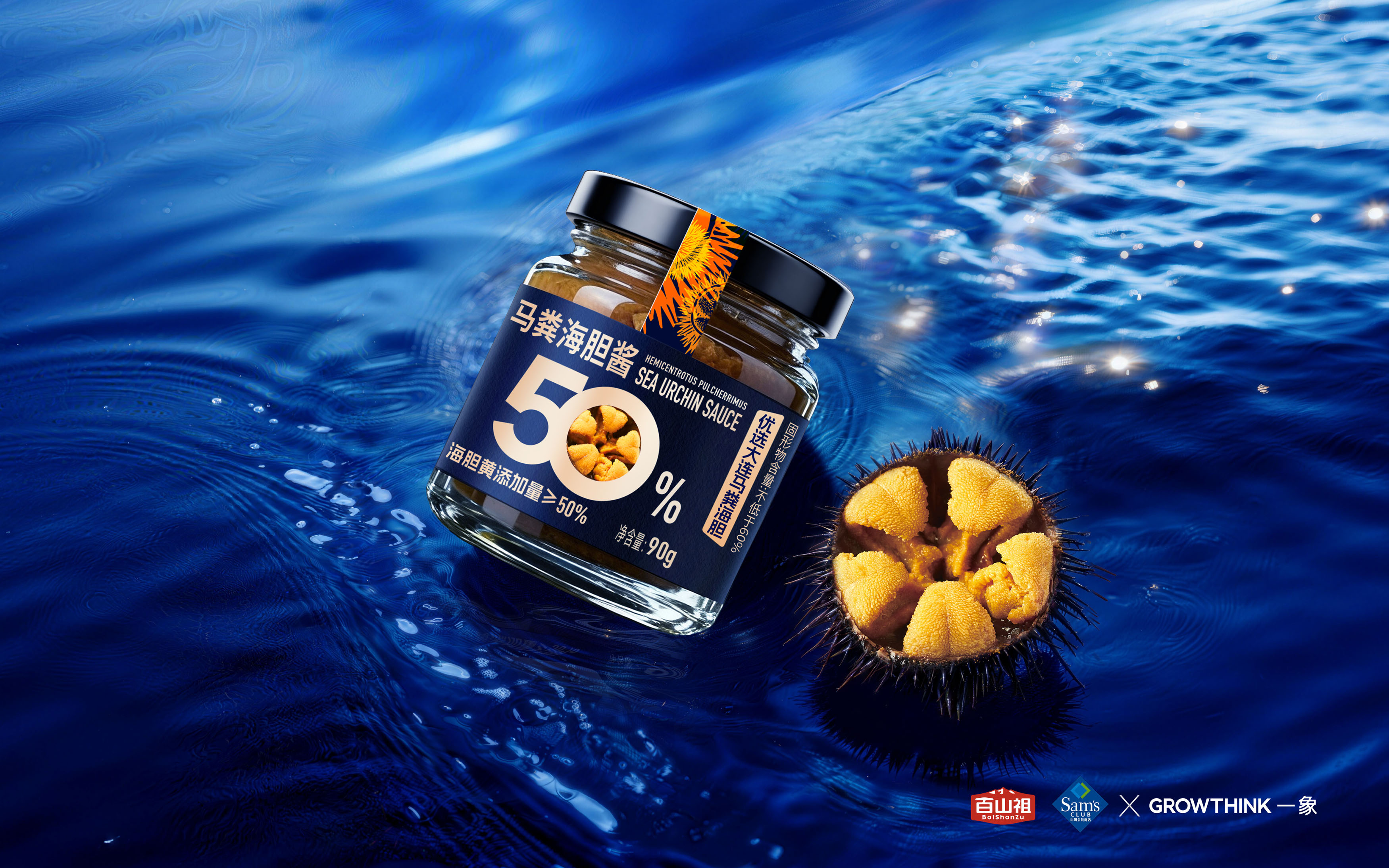 整体设计风格简约大气,摒弃冗余元素,旨在塑造山姆渠道海胆酱品类的大单品标杆形象,产品一上市即成为鲜味调味品赛道的爆品,快速抢占市场份额。